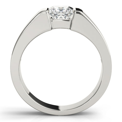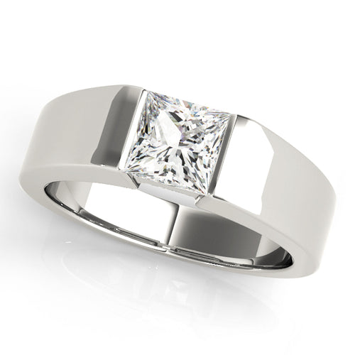 Sleek metal band features bold shoulders framing the setting; distinctive wide bezel secures the sides of the piece for a modern look.